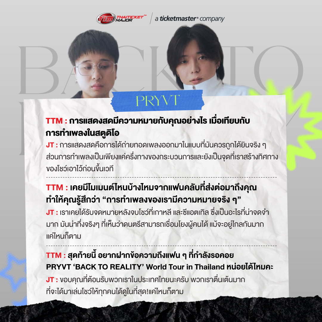 TTM : สุดท้ายนี้ อยากฝากข้อความถึงแฟน ๆ ที่กำลังรอคอย PRYVT ‘BACK TO REALITY’ World Tour in Thailand หน่อยได้ไหมคะ